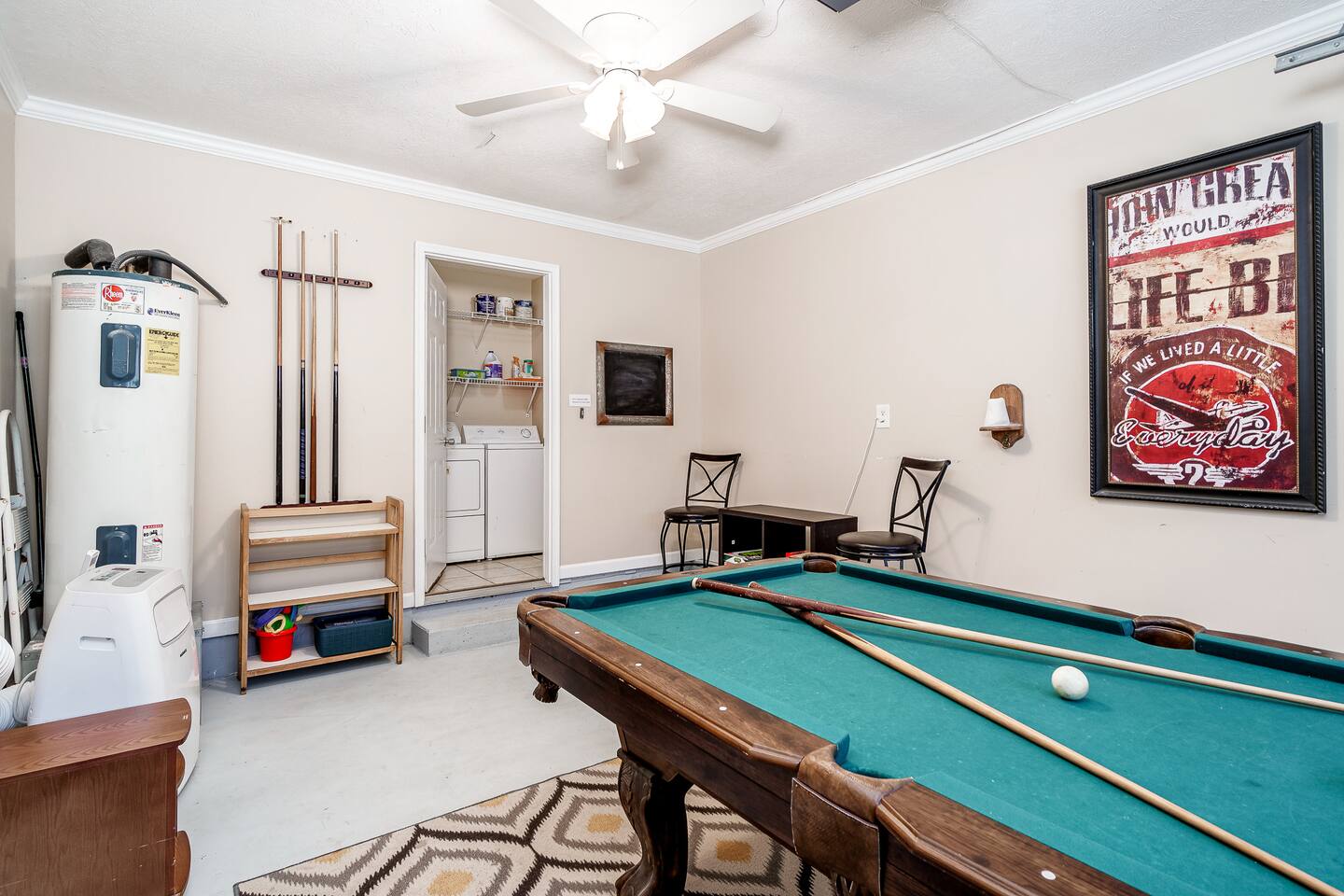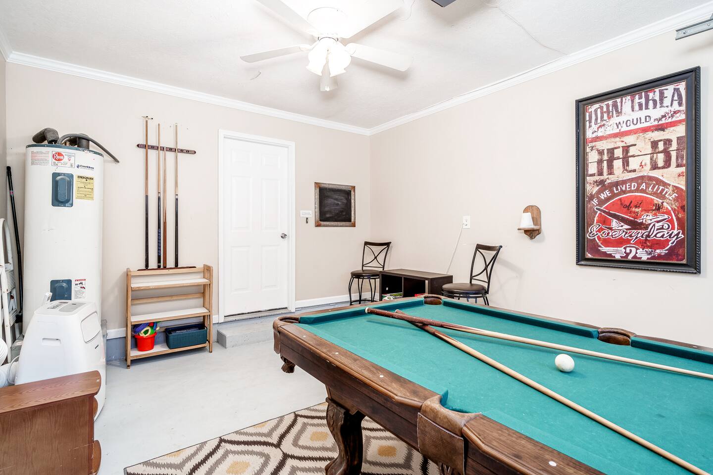 2 miles from Copper Ridge Wedding Venue. Enjoy this comfortable 3 bedroom home in a quiet neighborhood with a large private master suite. Your family and pets will love grilling out on the back deck overlooking the large fenced-in backyard. Prepare your meals in a fully stocked kitchen. Challenge each other to a game of pool in the garage-turned-game-room! Later, your family members can retreat to their separate bedrooms and enjoy watching their own flat screen TVs. Come enjoy your stay!