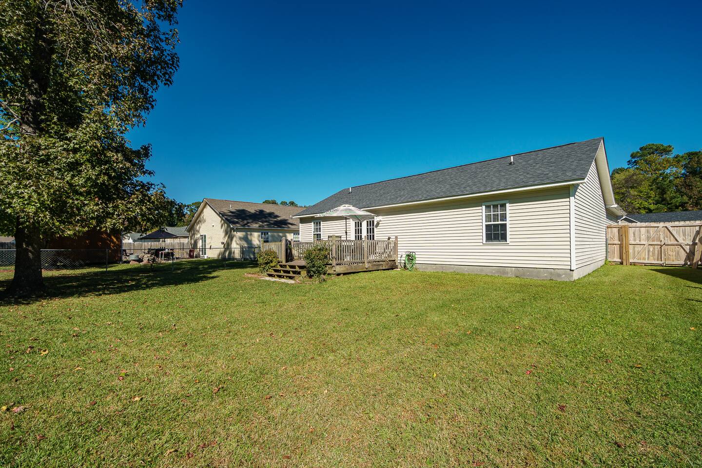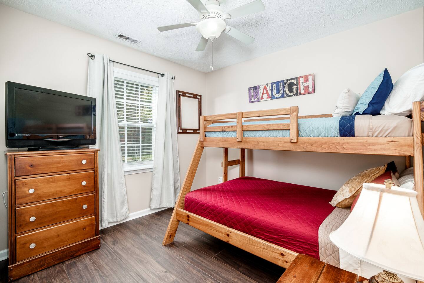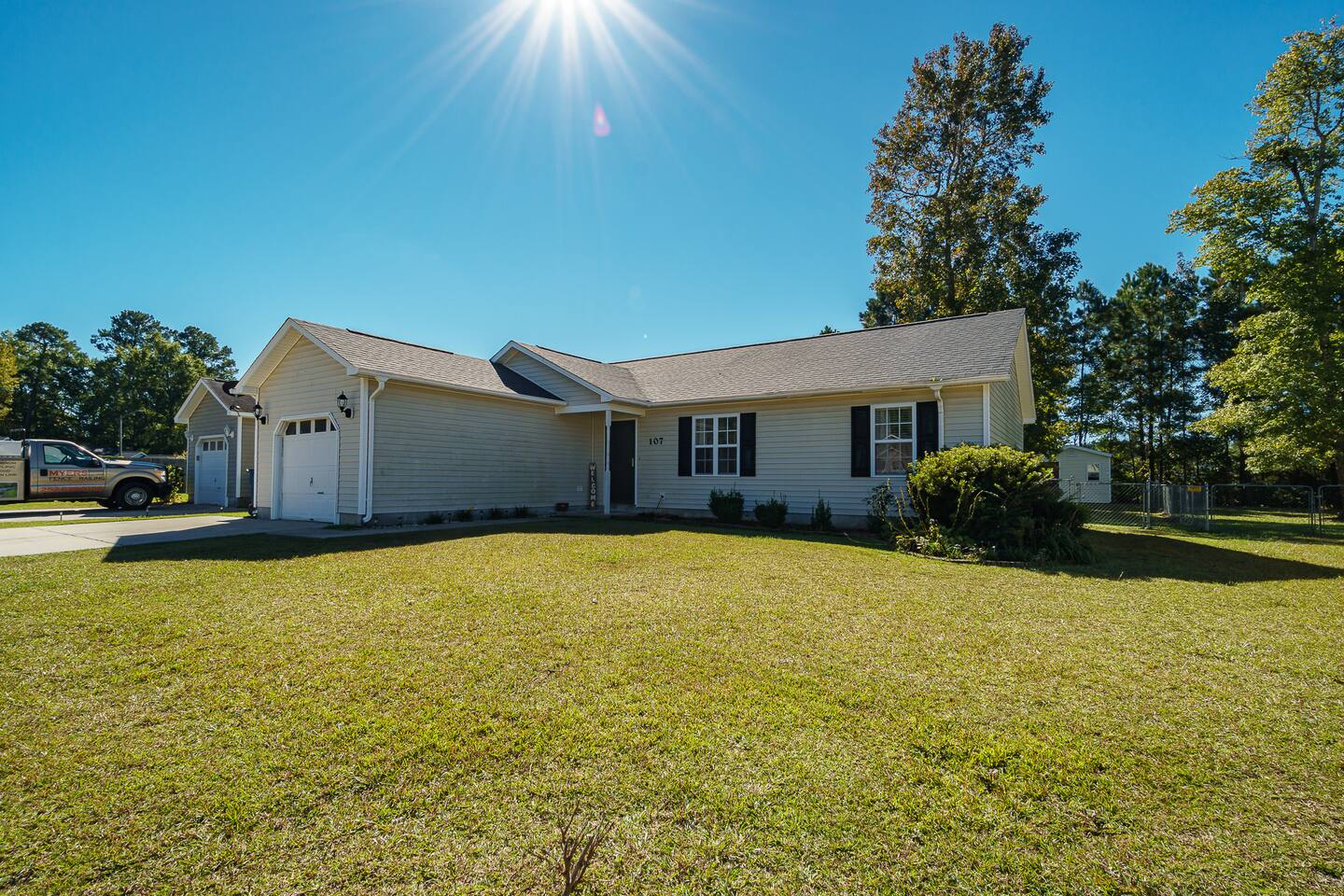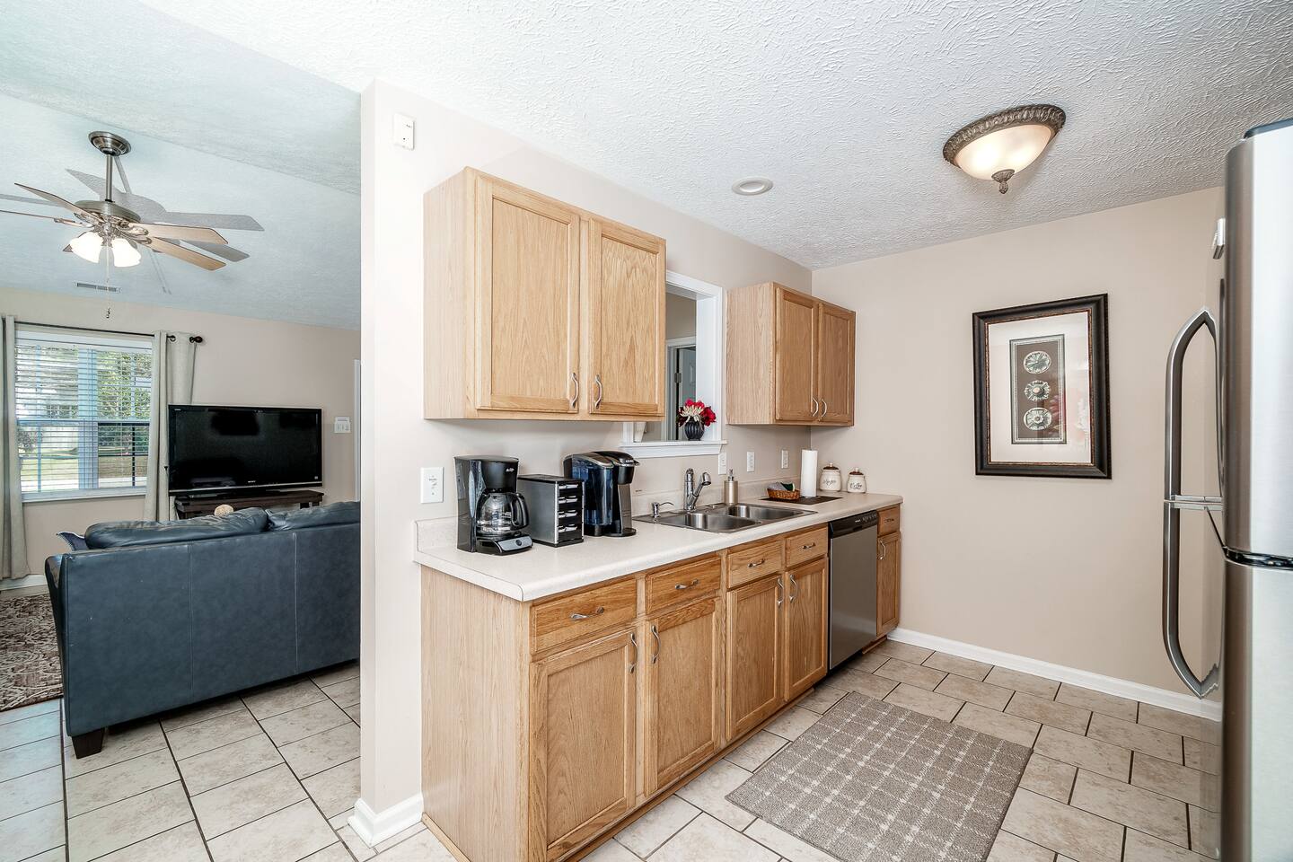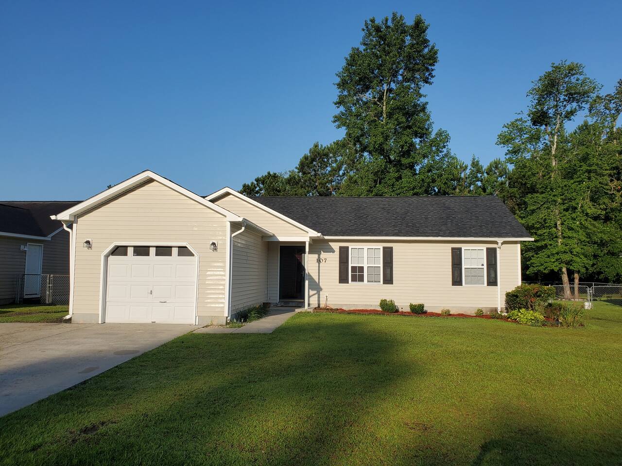 1100 square foot home | Pool Table | Propane Grill | 4 TVs | King Bed Our home is dog friendly (no cats) with an additional pet fee of $125. Bring the family! LIVING ROOM The living room features comfortable leather sofas and a large 55" smart TV. There is a small desk/ work station great for setting up your laptop in the living area as well. The Wi-Fi is super fast. Tile floors make hosting pets a breeze! MASTER BEDROOM The comfortable master suite features king size bed, large private bathroom, large dresser, and a large walk in closet. Master suite is on opposite side of house from other bedrooms for added privacy. 43" smart TV is mounted on the wall. All beds and pillows are fully encased. Iron and ironing board are located in master closet. All bedroom closets have extra blankets. MASTER BATHROOM Enjoy a private master bathroom with great water pressure in your shower. Shampoo, conditioner, body wash, hand soap, towels, and wash clothes are provided. MASTER CLOSET Off the bathroom is a large walk-in closet with plenty of hangers great for storing clothes and luggage. There you will find a pack n' play, extra blankets, iron, and ironing board. KITCHEN The kitchen table is seats 6 adults comfortably, but you can easily squeeze more kids onto the bench seating. The kitchen itself is fully stocked with all the utensils and appliances needed to prepare home-cooked meals. We provide Keurig and drip coffee makers, coffee, creamer, and sweeteners. 2 ADDITIONAL BEDROOMS The other two cozy bedrooms share a full bath. One bedroom features a queen size bed, two small night stands, a closet, and a wall-mounted smart TV. The other bedroom has a full over twin bunk bed, small dresser, closet, and flat screen TV with Roku. GARAGE/ GAME ROOM A pool table transforms the garage into a game room. Garage is insulated and includes a portable AC unit to keep the heat at bay during summer. A heater is provided for cold weather as well. Board games provide for fun in any weather. BACKYARD The large fenced-in backyard is perfect for kids and pets. The fencing is privacy fence on one side, and chain link along the back and other side. The back porch holds a propane grill and an outdoor patio table with 6 chairs and a large umbrella. PARKING The driveway holds three cars and one can park on street in front of house. LAUNDRY Free on-site washer and dryer. We provide a couple of laundry pods and dryer sheets. GENERAL Free Wi-Fi Towels and linens provided Shampoo, conditioner, body wash provided Drip coffee and Keurig Free in-unit washer and dryer Central heat and AC Hangers, iron, ironing board Trash bags, paper towels, napkins LOCATION This home is located just off Hwy 70 1 mile from Harris Teeter (grocery store) 2 miles from Carolina Colours Golf Club 2 miles from Copper Ridge wedding venue 4 miles from the Coastal Carolina Regional Airport 6 miles from Carolina East Medical Center 6 miles from downtown where you will find Union Point Park, Tryon Palace, the Birthplace of Pepsi Cola, and the Bear Towne Escape Room to name a few 6 miles from Lawson Creek park with public boat/ kayak launch 7 miles from Amelia Grove wedding venue 13 miles from Cherry Point 32 miles from Atlantic Beach